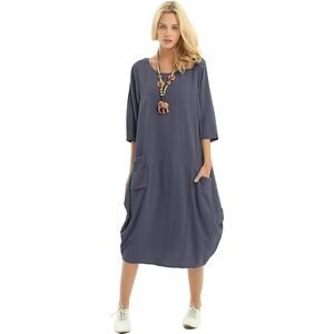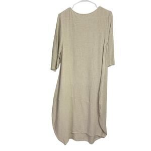 Anysize Lantern Dress Womens S Beige Linen Blend 3/4 Sleeve Pockets Lagenlook