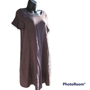 Anysize Spring Summer Soft Linen Cotton Lantern Loose Dress Size Large Color Gray. Side pockets.