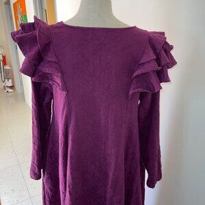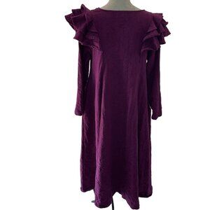 Anysize Vintage Womens Maxi Dress Size Large Purple Linen Ruffle Long Sleeve