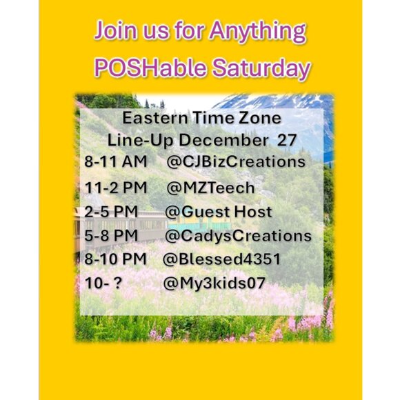 Happy Poshable Saturday everyone! I will be going live to sell yours and mine at 1 pm EST. Then at 3 pm EST bring me your women or men's jeans for the Jeans posh party! See you soon!
