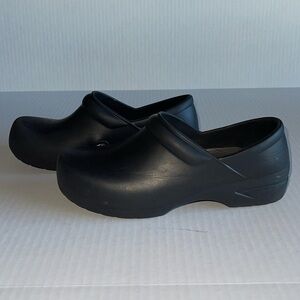 Anywear black EVA slip resistant nursing clogs. Memory foam inserts. Size 9. Gently pre owned condition