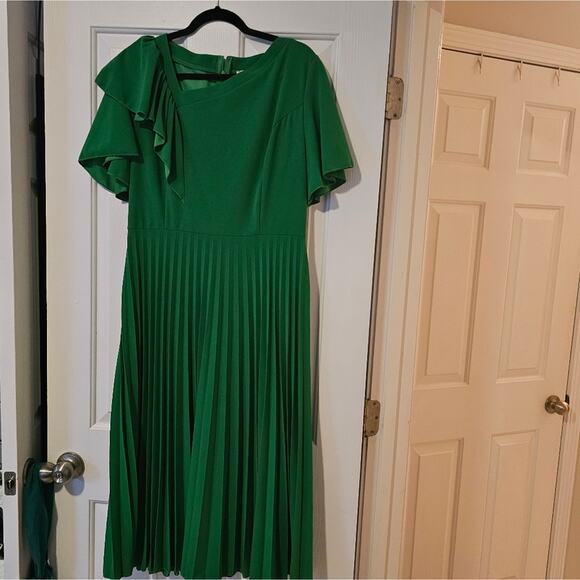 Aomei Green Midi Dress Size 2XL Pleated Flowy Plus Size Dress