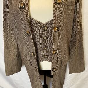 Aowofs Women's Herringbone Long Jacket Coat Size Medium Brown White Neck Strap