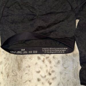 Two super cute workout tops, long sleeve, cropped, keyhole details on back, thumb holes, speckled/camo prints