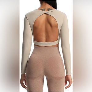 Aoxjox Long Sleeve Open Back Workout Crop Top