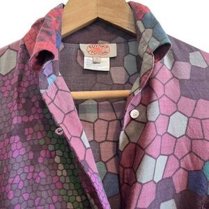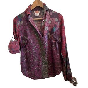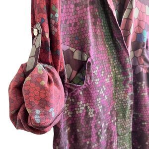 Aoyama Itchome Shirt Women’s Small Mixed Print Roll Tab Viscose
