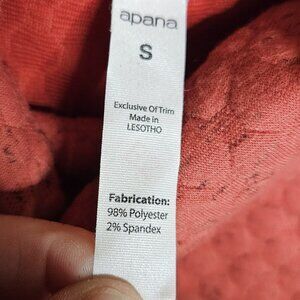 Apana women’s burnt orange quilted relaxed turtleneck top small. Gently used condition. Measurements are: 27 ½" sleeve (measured from neck seam), 21 ½" from shoulder to hem, and 22 ½" from armpit to armpit.