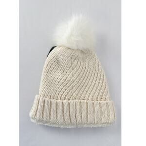 Apana Knit Pom Beanie Hat One Size Cream New Fleece Lined Womens