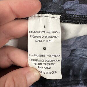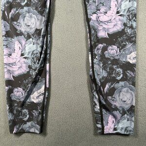Apana Leggings Womens Large Black Purple Floral High Rise Yoga Pants Spandex Gym