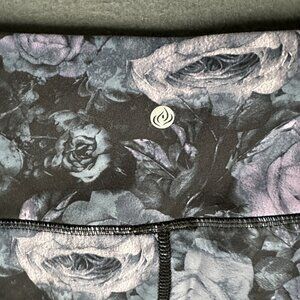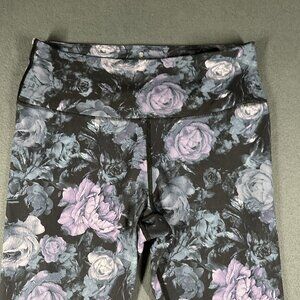 Apana Leggings Women's Large Black Purple Floral High Rise Yoga Pants Spandex Gym