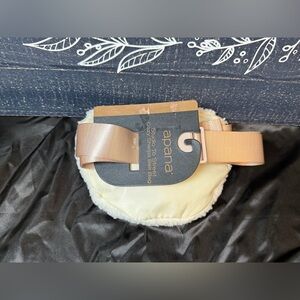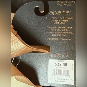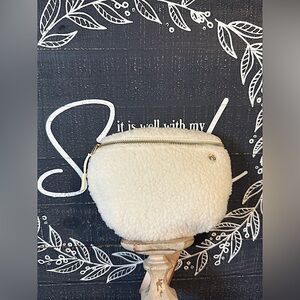 This Apana belt bag and fanny pack is a stylish addition to any outfit. The exterior is made of cozy sherpa material in an off-white color, with a beige handle/strap that adds a touch of elegance. The lining is a pristine white color, providing a comfortable contrast to the exterior. This bag is perfect for women who want to keep their hands free while on the go.