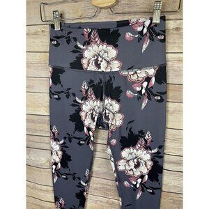 Apana XS NWt Floral Activewear Leggings Gray Yoga Gym Extended Waistband Cropped
