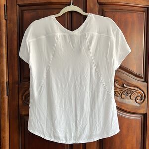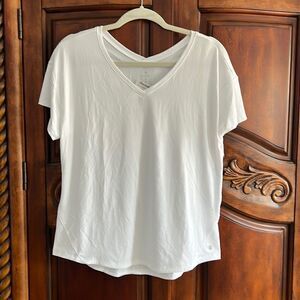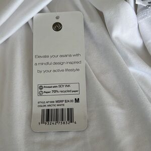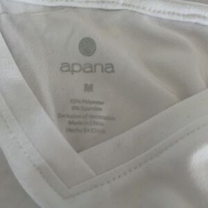 Apana activewear white shirt- size M Lay flat pit to pit is 21 inches Length from shoulder is 23 inches. NWT