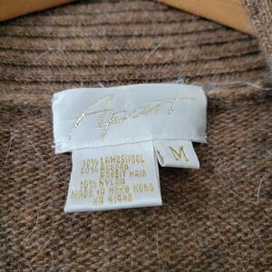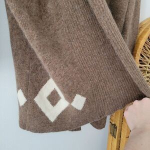Apart Lambswool/Angora Cardigan Sweater Diamond Pattern Heather Brown/Cream M