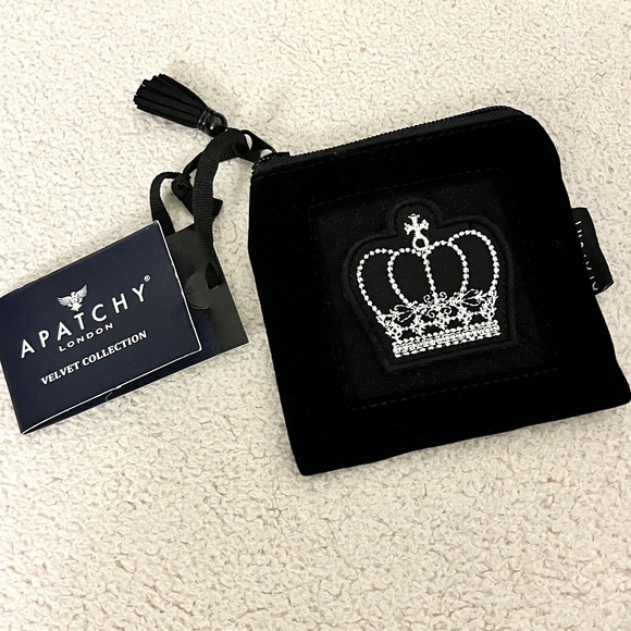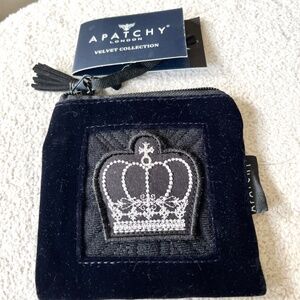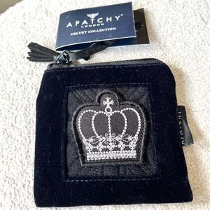 Apatchy London Luxury Velvet Crown Patch Coin Purse. Apatchy London Great British Design, The Luxury Velvet Collection Coin Purse. Luxury nylon velvet in black. Silver Crown on front. Top zipper with tassel. Fully Lined and interior wipeable.. 4 1/4" X 4 1/4" Square. Never used.