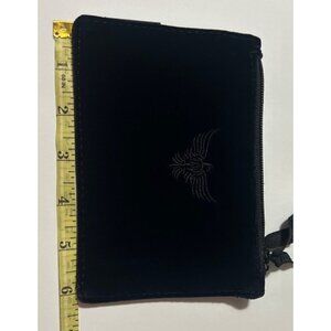 Apatchy London Small Black Velvet Coin Purse With Embroidered Logo & Zipper Clos