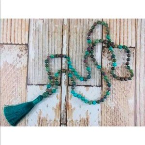 These gemstones are even prettier in person. 6 mm, each hand knotted with a bright teal tassel. Unique mix of rare colored Apatite gemstone’s, including turquoise. Also, the spacer beads are Rainbow Pyrite. MAGICAL! Will be energetically charged by a Reiki Master ✨✨✨