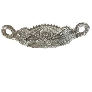This exquisite tapas dish is a true masterpiece of handcrafted art glass. The oval shape and clear color make it a brilliant addition to any dinnerware collection. The dish is made of high-quality crystal and has been produced in the United States during the late 19th century. Its vintage style and intricate details make it a unique and valuable piece for any collector. This dish is perfect for serving a variety of tapas and is sure to impress your guests.