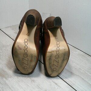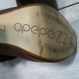 Apepazza Designer Leather Peep Toe Ankle high heeled Boots Conac Brown Size 7