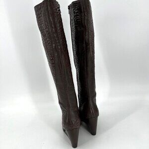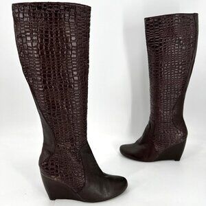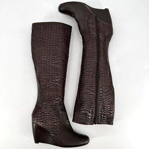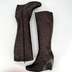 Apepazza Mock Croc Wedge Riding Boots Brown Velazquez Italian Size 9