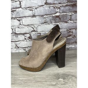 Selling Apepazza Parma Brown Taupe Leather Peep Toe Heeed Booties Women Sz 7.5M US/38EU
