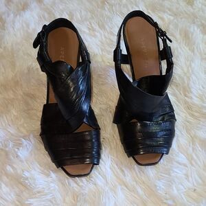 Apepazza Platform Heels, super soft black leather ITALIAN MADE in excellent used condition, no flaws noted Heel and sandal straps are leather. These are FABULOUS SHOES!