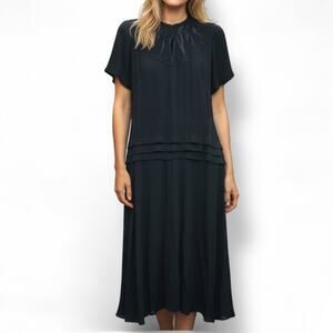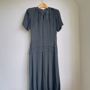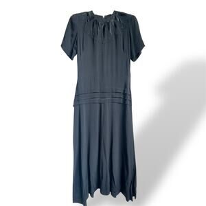 Apex Original 1940s Rayon Dress Sheer Black Embroidered Drop Waist Midi Sz M