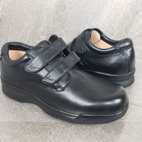 Apex Shoes Men 10.5 Black Walking Therapeutic Athletic Two Strap Slip Resistant