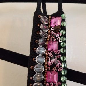AphOrism Women's Small Black Bejeweled Knit Tank Top