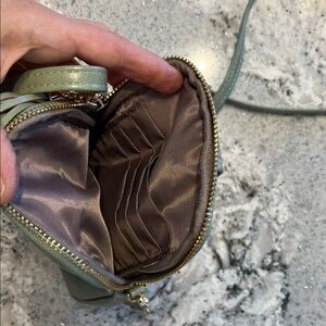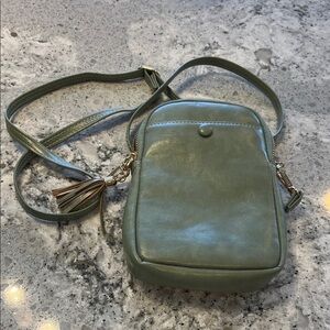 Aphison Green Mini Backpack/Crossbody Bag with adjustable straps.