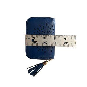 Aphison RFID-Blocking Card Holder Wallet Tassel Zipper Closure Navy Blue