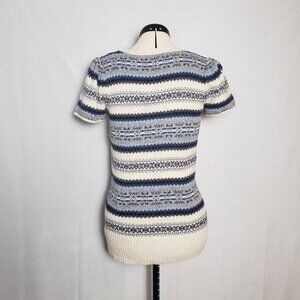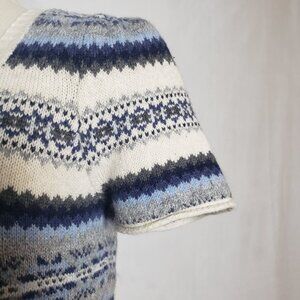 Aphorism Fair Isle Pattern Short Sleeve Scoop Neck Sweater Angora Blend Ladies L