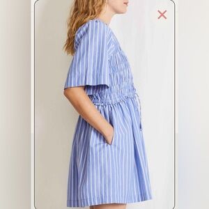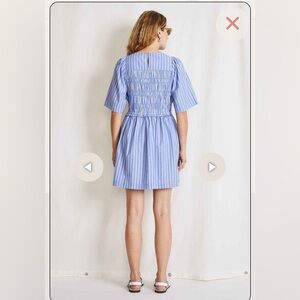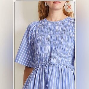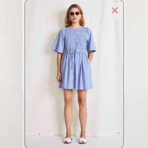Apiece Apart Adorna Blue and White Stripe Smocked Mini Dress - Medium