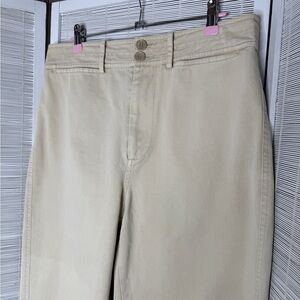Apiece Apart Barrel Leg Pants Tan Size 12 100% Cotton Waistband Pocket