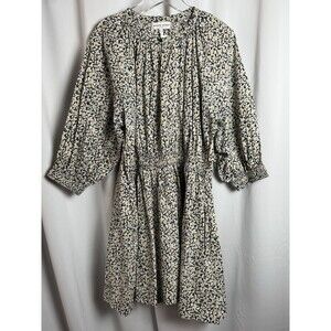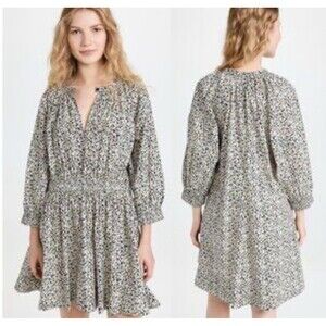 Apiece Apart Black Beige Cobano Floral Organic Cotton Mini Dress Sz L New