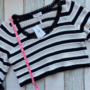 Apiece Apart Black White Striped Open Crochet Knit Slouchy Pullover Sweater