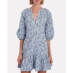 Apiece Apart Blue Mitte Floral Poplin Button Front Mini Dress Size XS