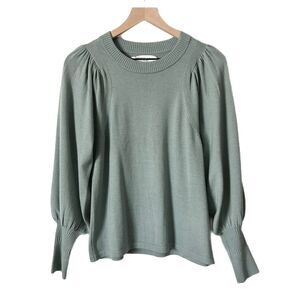 Apiece Apart Dewi Puff Sleeve Crew Neck Sweater in Sage Green. Great used condition with light mark on back of sleeve. Please review all photos prior to purchase. Size Medium.