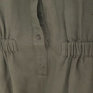 Size M. Cute and easy throw on. Small hole by buttons. Can easily get it sewn up!