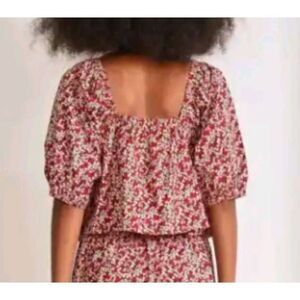 Apiece Apart Gali Shirred Poplin Square Neck Floral-Print Blouse sz Medium