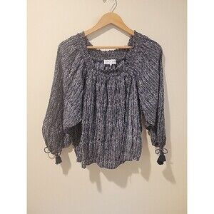 Apiece Apart Glorieta Top Navy Cactus Stripe Print Silk Tassel Tie Sleeves Sz 4