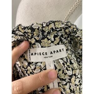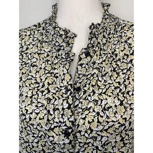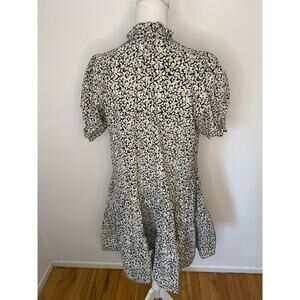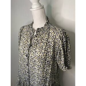 Button down short sleeve cotton mini dress with tiered skirt. Light yellow and white floral pattern. No obvious flaws or signs of wear.