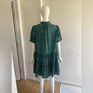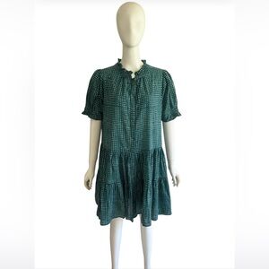 Apiece Apart Las Alturas mini dress Green Gingham Check Ruffle Plaid L Gauze