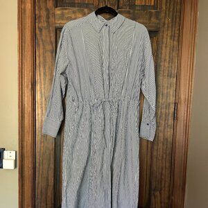 Apiece Apart Long Sleeve Button Down Shirt Dress in Stripe