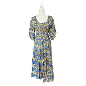 Apiece Apart Mallorca Cotton Silk Maxi Dress 0 Blue Yellow NEW