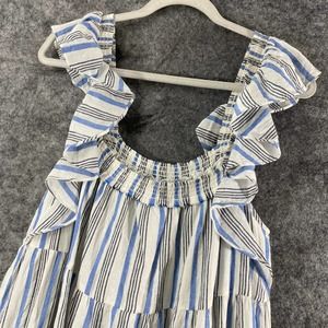 Apiece Apart Midi Dress 2 Ossetia Tiers Seaside Stripe Blue White A-Line