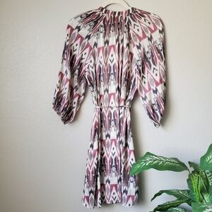 Apiece Apart Mini Hisa Linen Silk Puff Sleeve Belted Mini Dress In Bali Ikat 0
