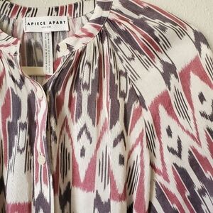 Apiece Apart Mini Hisa Linen Silk Puff Sleeve Belted Midi Dress In Bali Ikat 0.
