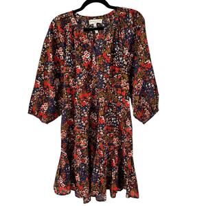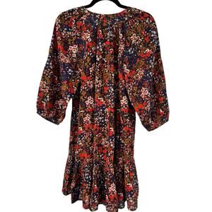 Apiece Apart Mini Mitte Dress Size Small Floral Bold Blomster Red Cotton Poplin