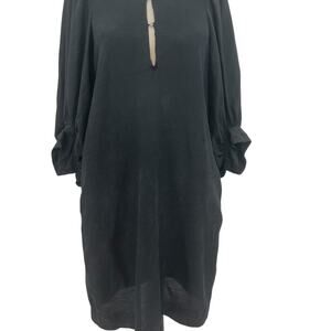 Apiece Apart Mini Shift Dress Balloon Sleeve V-Neck Linen Tencel Black Size 2